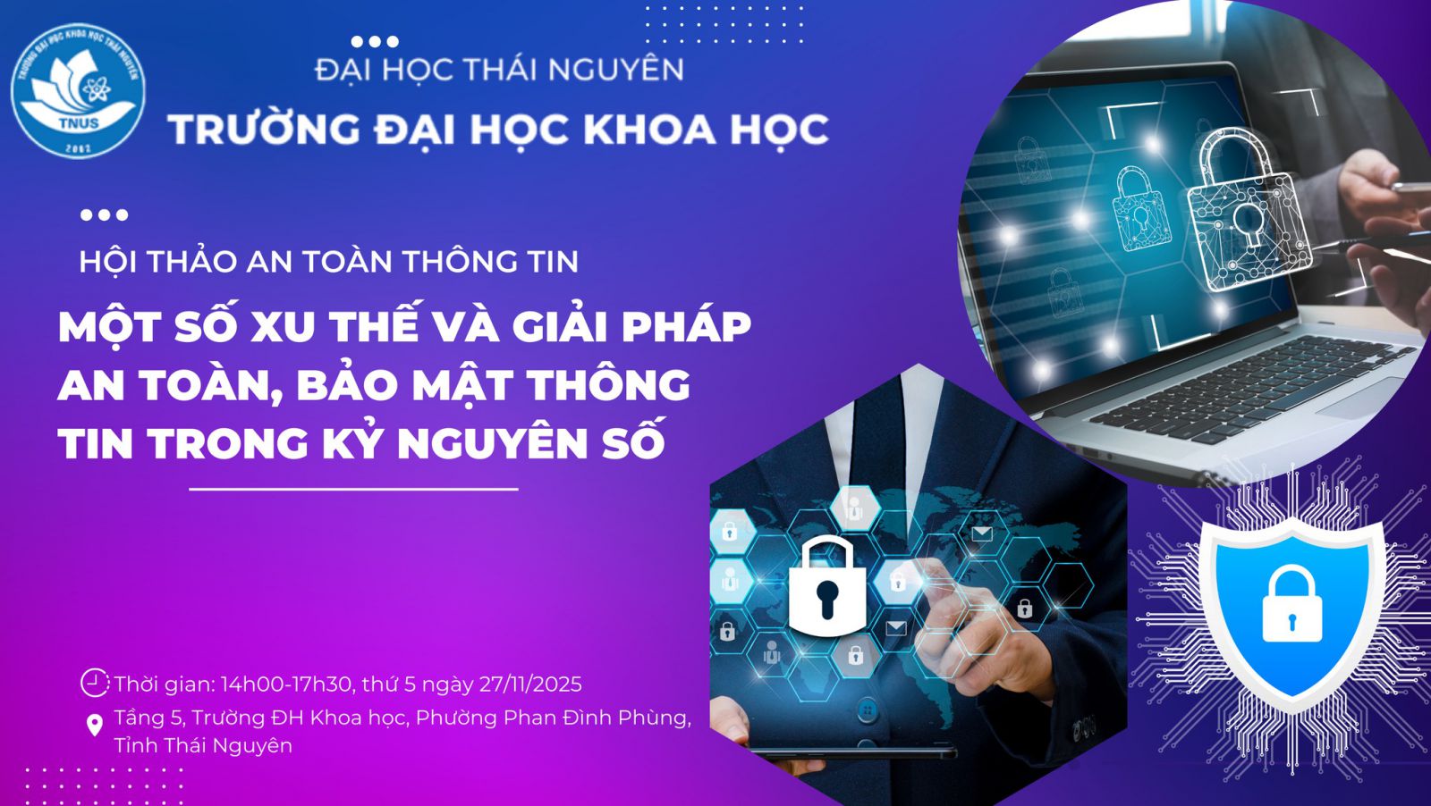 Thời gian: 14h00–17h30, Thứ 5 ngày 27/11/2025 Địa điểm: Tầng 5, Trường Đại học Khoa học – Phường Phan Đình Phùng, TP. Thái Nguyên...
