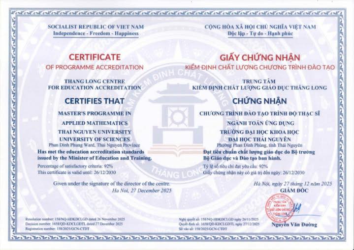 Quyết định cấp giấy chứng nhận Thạc sĩ ngành Toán ứng dụng: